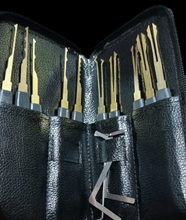 This lock pick set is portable, carry this wherever you go. It has the picks inside a leather bag. This bag holds 20 picks and 4 tension tools. The picks are varying in size and include rakes.