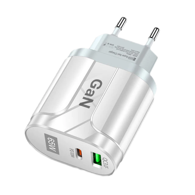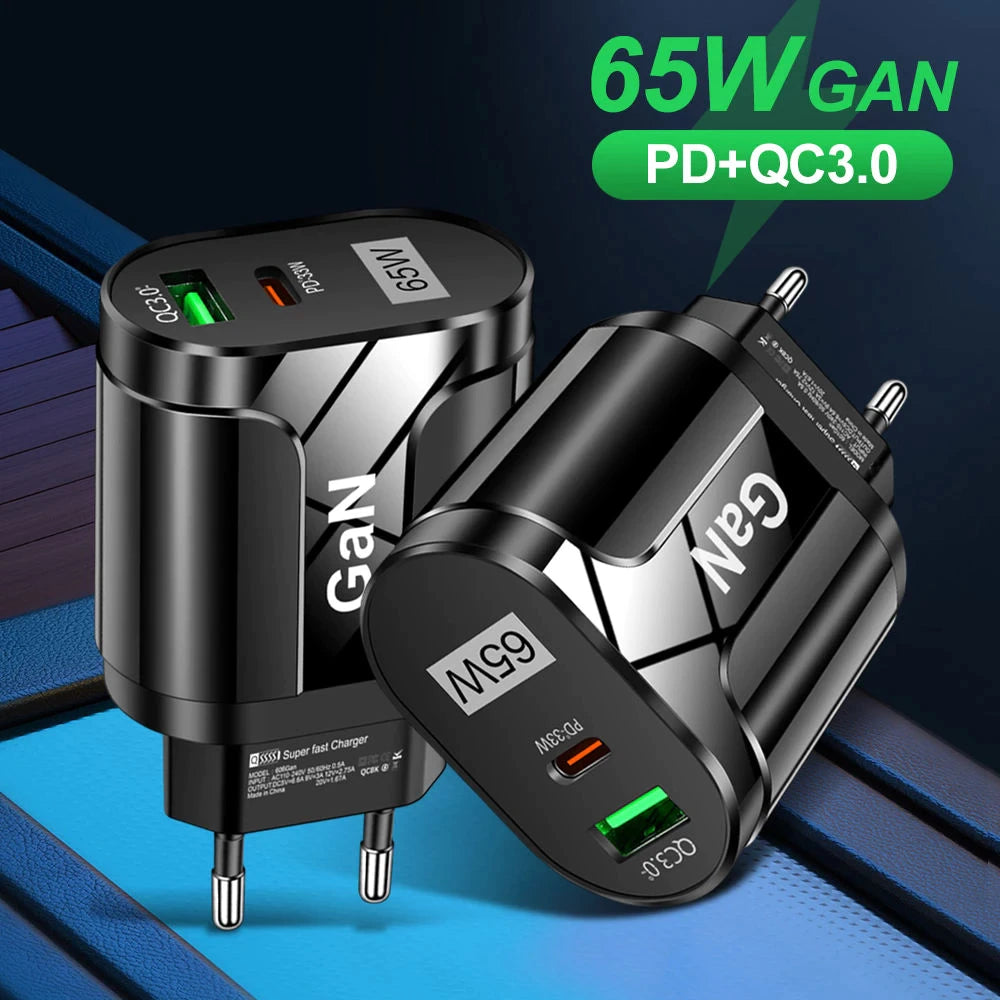 Input is provided with a EU plug and the output has 2 ports: QC3.0 32W (USB Type A) and a PD 33W (USB Type C)